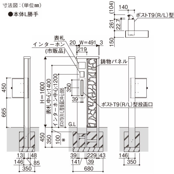 商 品 詳 細商品名【シャローネポストユニット S05型 表札灯タイプ ポスト加工なし インターホン加工なし】サイズ詳細図でご確認下さい。