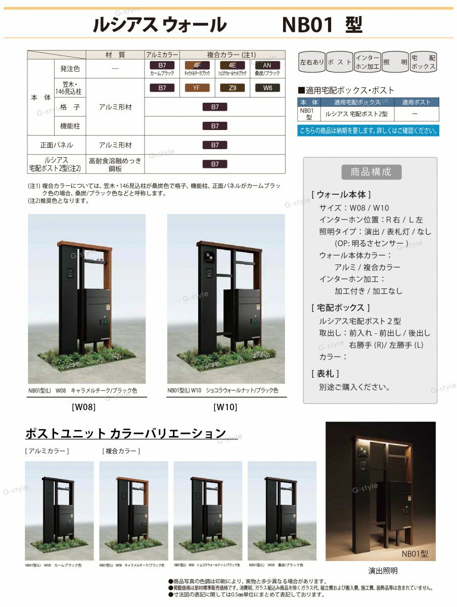 【無料プレゼント対象商品】門柱 ポスト 宅配ボックスYKK YKKapルシアスウォールNB01型 W10 表札灯タイプ複合カラールシアス宅配ボックス2型 前入れ後出しポスト加工なし インターホン加工なし機能門柱 機能ポール 宅配ポスト LED