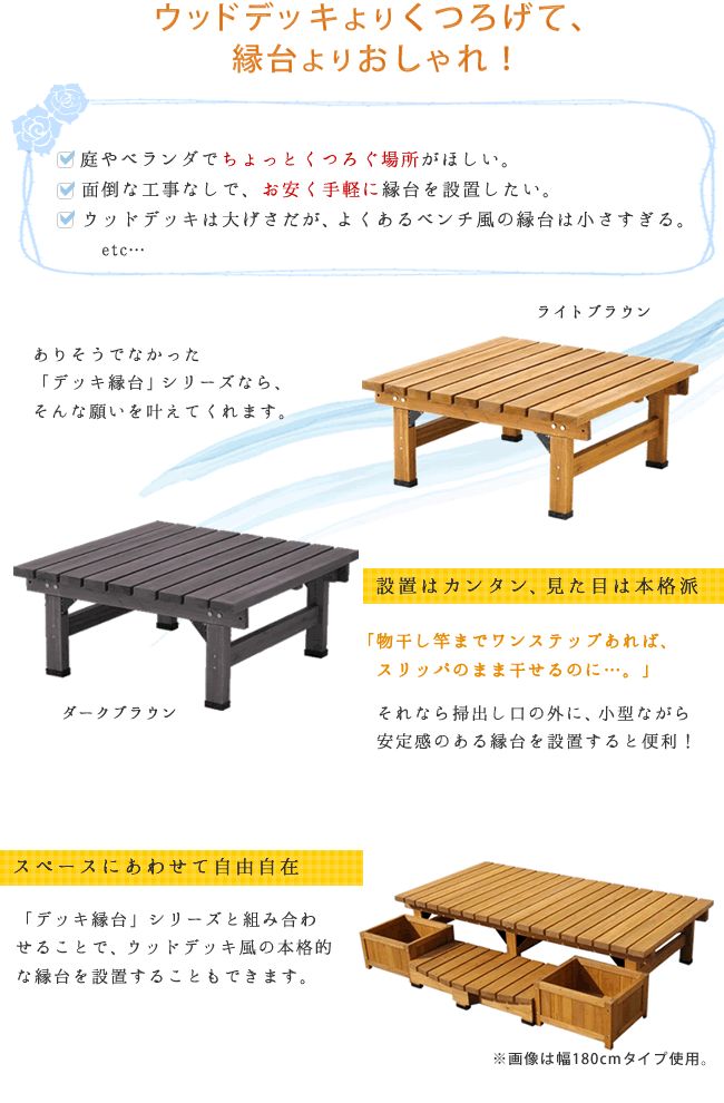■商品名デッキ縁台 90×90 ■型番 DEC-9090 DBR(ダークブラウン) ■サイズ 幅 約900×奥行 約900×高さ 約400mm ■重量 約15kg ■材質 杉材天然木 ■仕上げ ステイン塗装 ■組立区分 組み立て式 ■生産国 中国 ■備考 ※汚れたら水拭きしていただけます。
