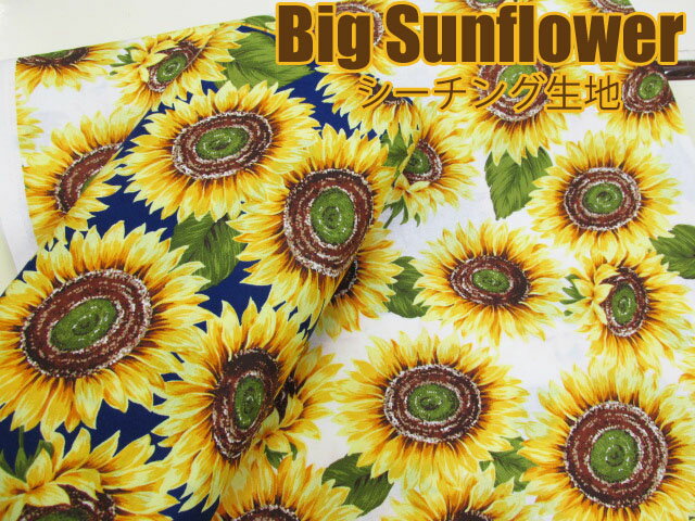 可愛い ビッグサンフラワー・ひまわり柄 シーチング生地 (キッズワンピ スカート チュニック アロハシャツ バッグ エプロン カバーリング インテリア 衣装 手芸 手作り ハンドメイド)