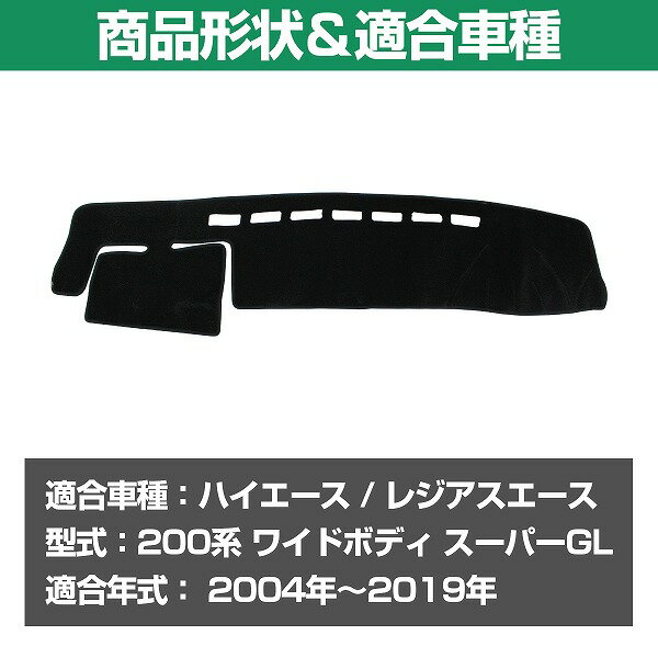 専用設計 ダッシュマット ハイエース レジアスエース 200系 ワイドボディ スーパーGL 2004-2019 ズレ防止 ブラック ダッシュボードマット