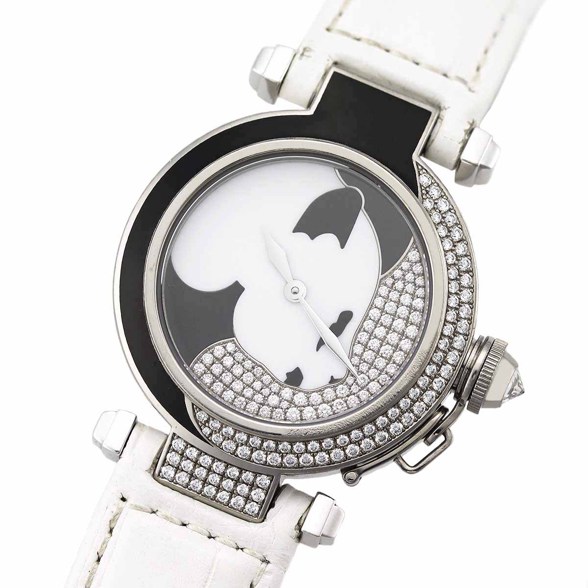 2006年20個限定 Cartier カルティエ ダイヤモンド パシャドゥカルティエ 時計 パンダ 32mm 七宝エナメルダイヤル 750 K18 WG ホワイトゴールド ダイヤモンド文字盤 クォーツ SWISS ホワイトクロコストラップ 【送料無料】 【中古】21941102